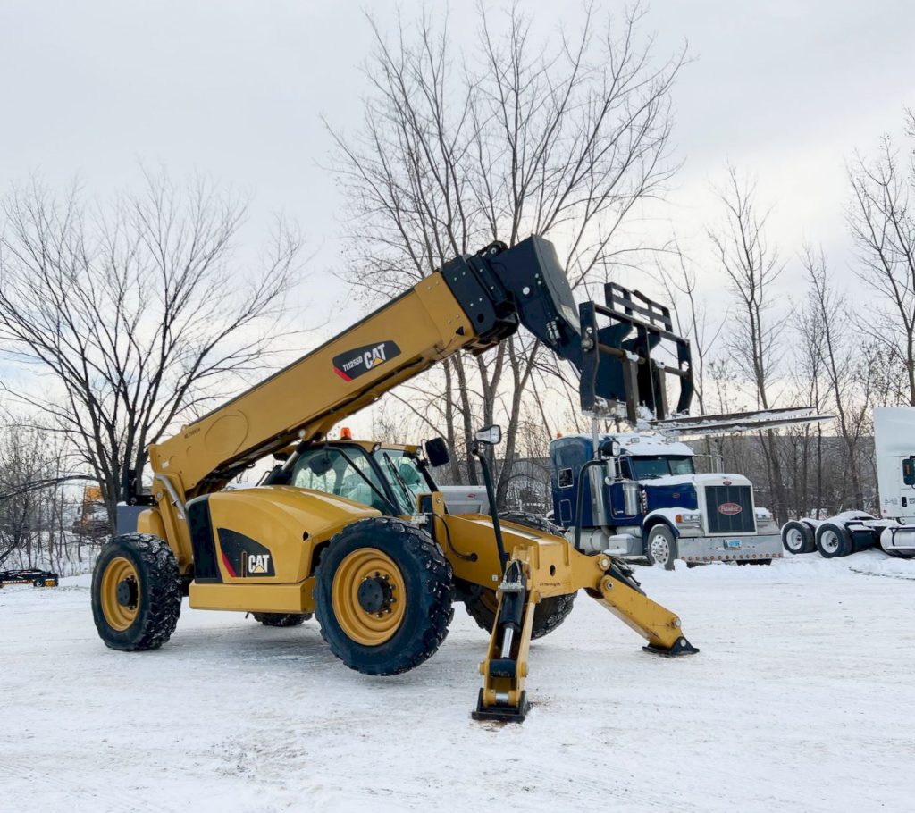 Caterpillar TL1255D telescopic boom lift, 55 ft reach, 12,000 lbs capacity, enclosed cab, outriggers, aux hydraulics, foam filled tires. 4 speed powershift. Cat diesel engine. No leaks. Brand new def pump! Excellent condition.