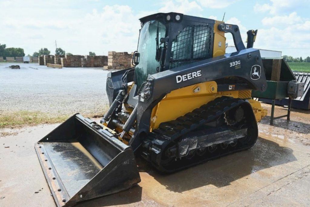 Deere 333G skid steer, fully enclosed cab with heat and A/C, 18″ tracks with 85% tread. Showing 1,178 hours. High flow hydraulics. Hands free quick attach. Hand controls. Dial or foot throttle. Push button start. Backup camera. Electronic display. Code protection. Extremely good machine in flawless condition. Runs and operates great. Absolutely nothing wrong with it.
